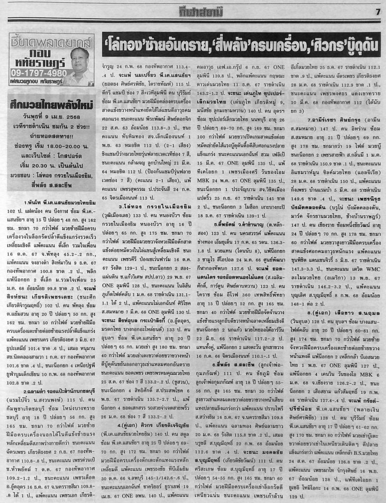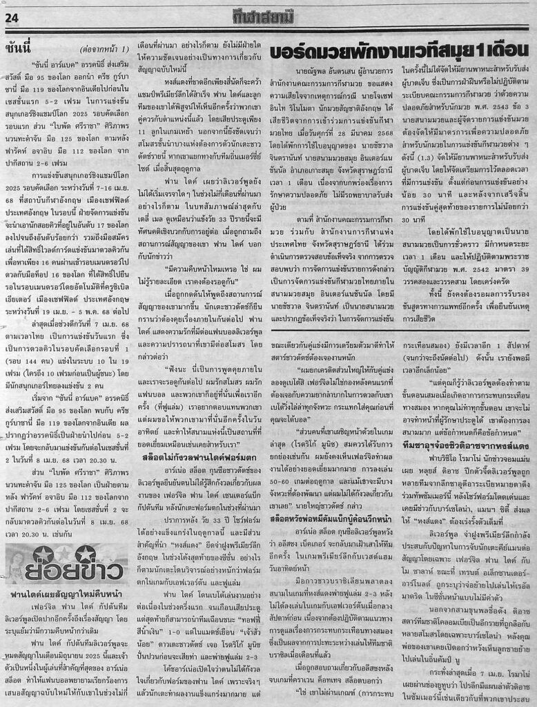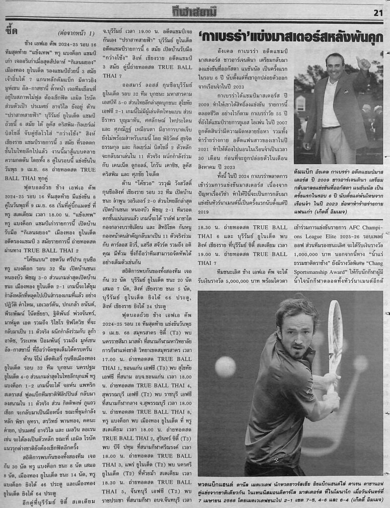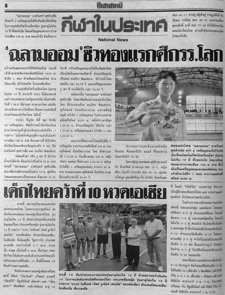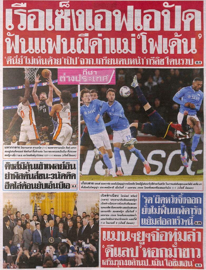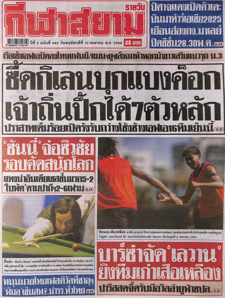 หนังสือพิมพ์กีฬา กีฬาสยาม ฉบับ ประจำวันที่ 9/4/2025