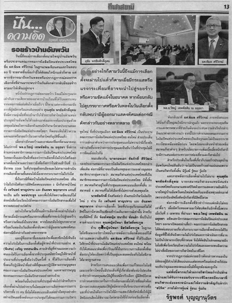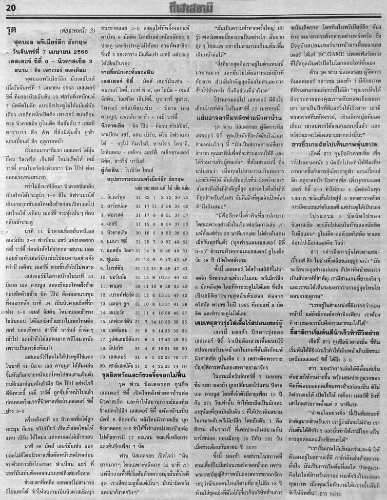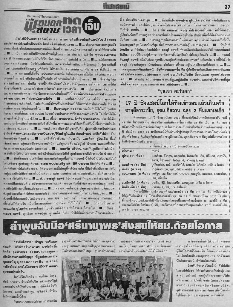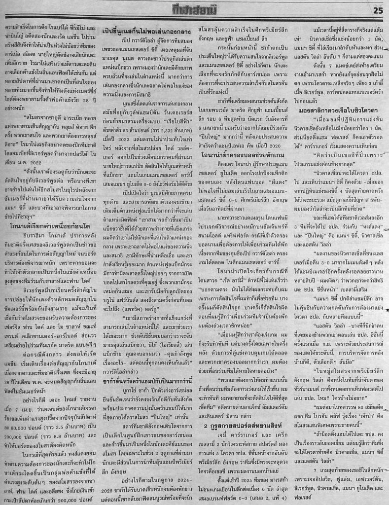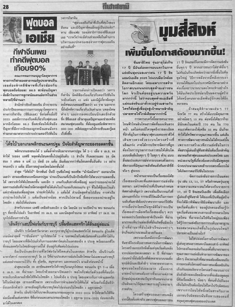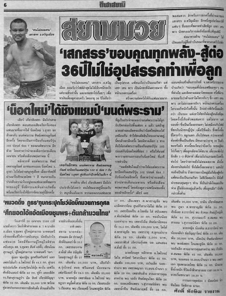 หนังสือพิมพ์กีฬา กีฬาสยาม ฉบับ ประจำวันที่ 9/4/2025